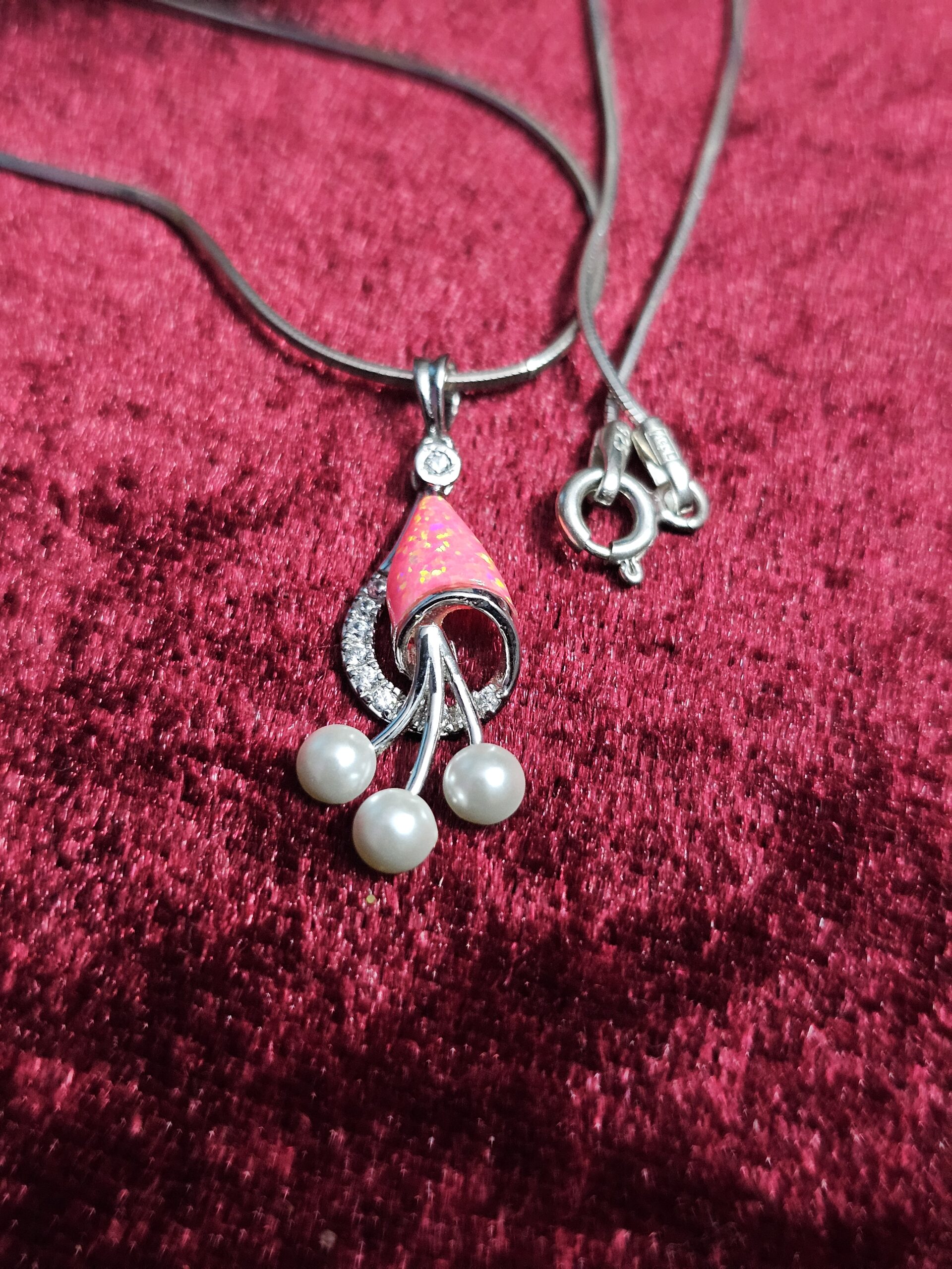 Add a touch of elegance and timeless beauty to your jewelry collection with this 925 sterling silver opal and pearl pendant set. Designed with fine craftsmanship, the pendant showcases a radiant opal stone known for its captivating play of colors.